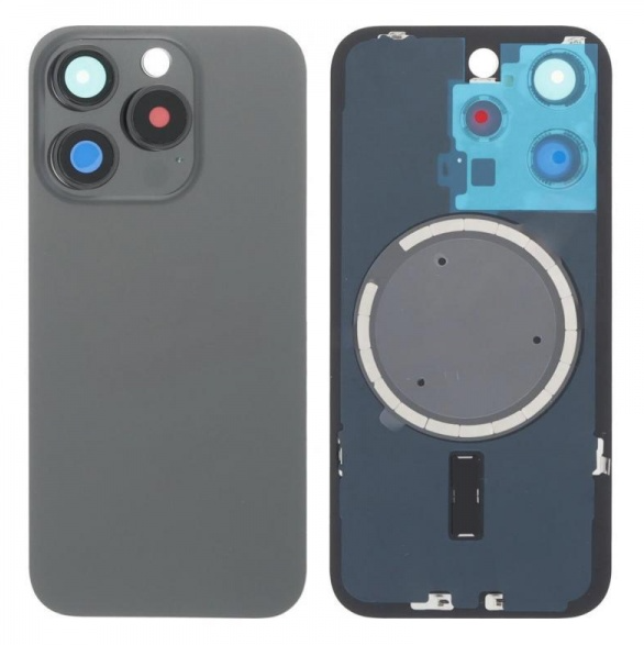 iPhone 15 Pro Max - Задняя крышка, черная (в сборе с креплением и линзами камеры)